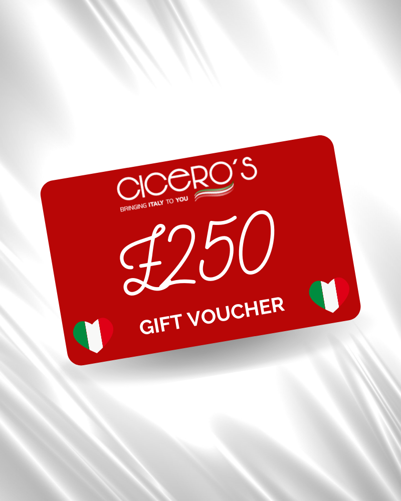 Do you find it hard to think of original gifts to give to friends and family at special occasions? Then why not treat your loved ones to an authentic Italian shopping experience with a £250 Cicero's gift voucher. Perfect for larger occasions, this £250 gift voucher will open up the world of Italian food to a friend or family member for them to fill up their shopping basket with some of the best Italian food products and brands online, and delivered straight to their door!