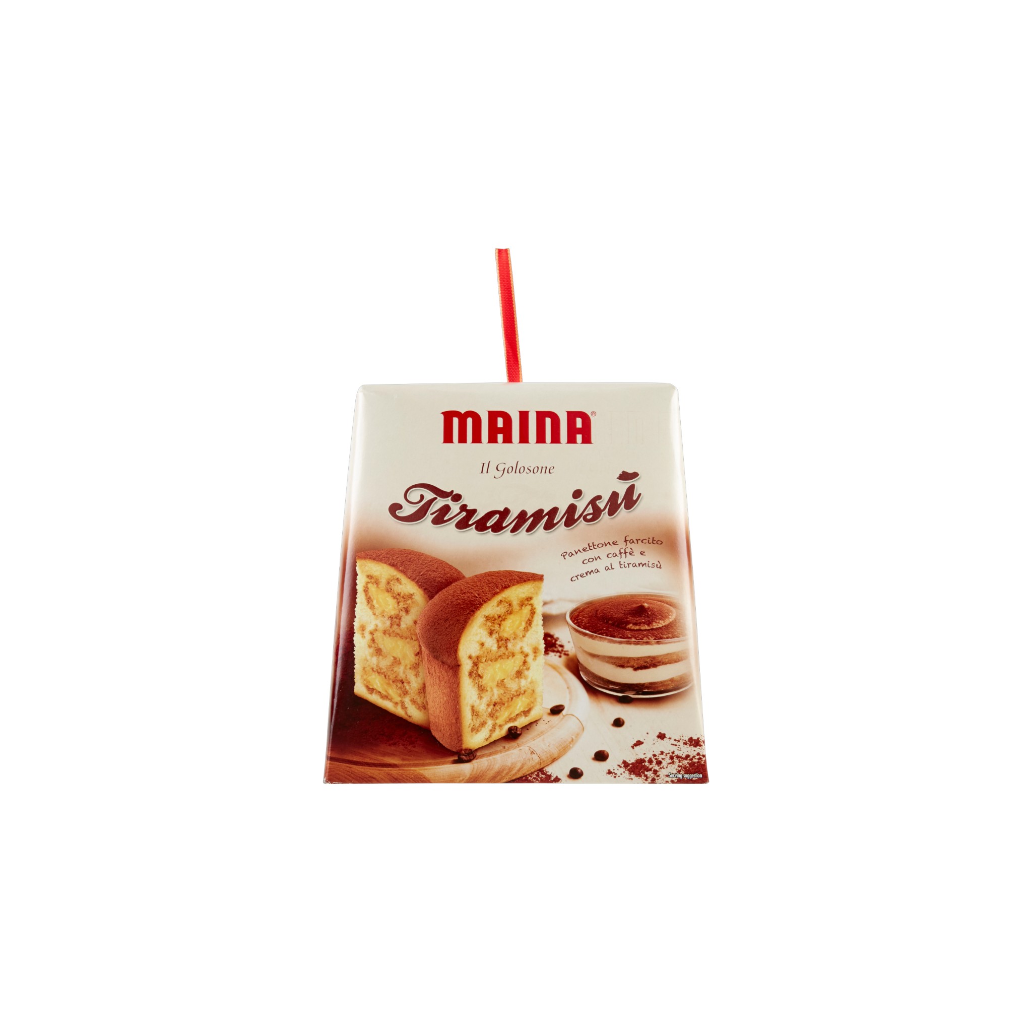 Panettone Tiramisù Panettone with coffee and tiramisù cream Naturally leavened Panettone, soaked in coffee and filled with a delicious Tiramisù cream. As is generally the case, decorating the cake with cocoa powder included inside the packing, is left until the cake is about to be served