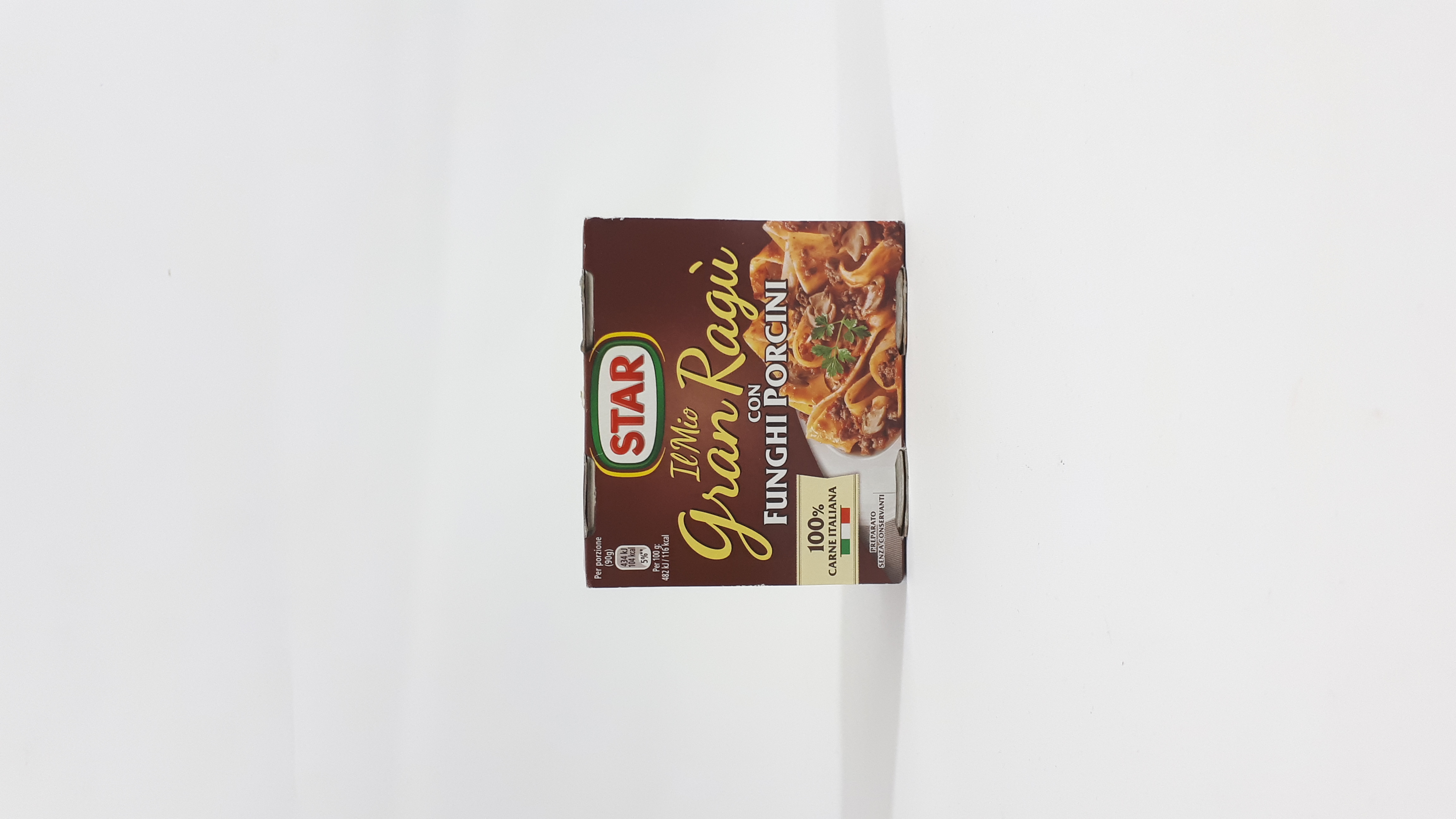 Water, tomato concentrate 22%, porcini mushrooms 15% (Boletus edulis and related group), meat 12% (bovine 9%, pork 3%), mushrooms Pleurotus ostreatus 7%, sunflower oil, carrots, onions, celery , salt, modified corn starch, pork belly, white wine, parsley 0.6%, sugar, garlic, flavorings, pepper. May contain traces of: milk, fish, egg.